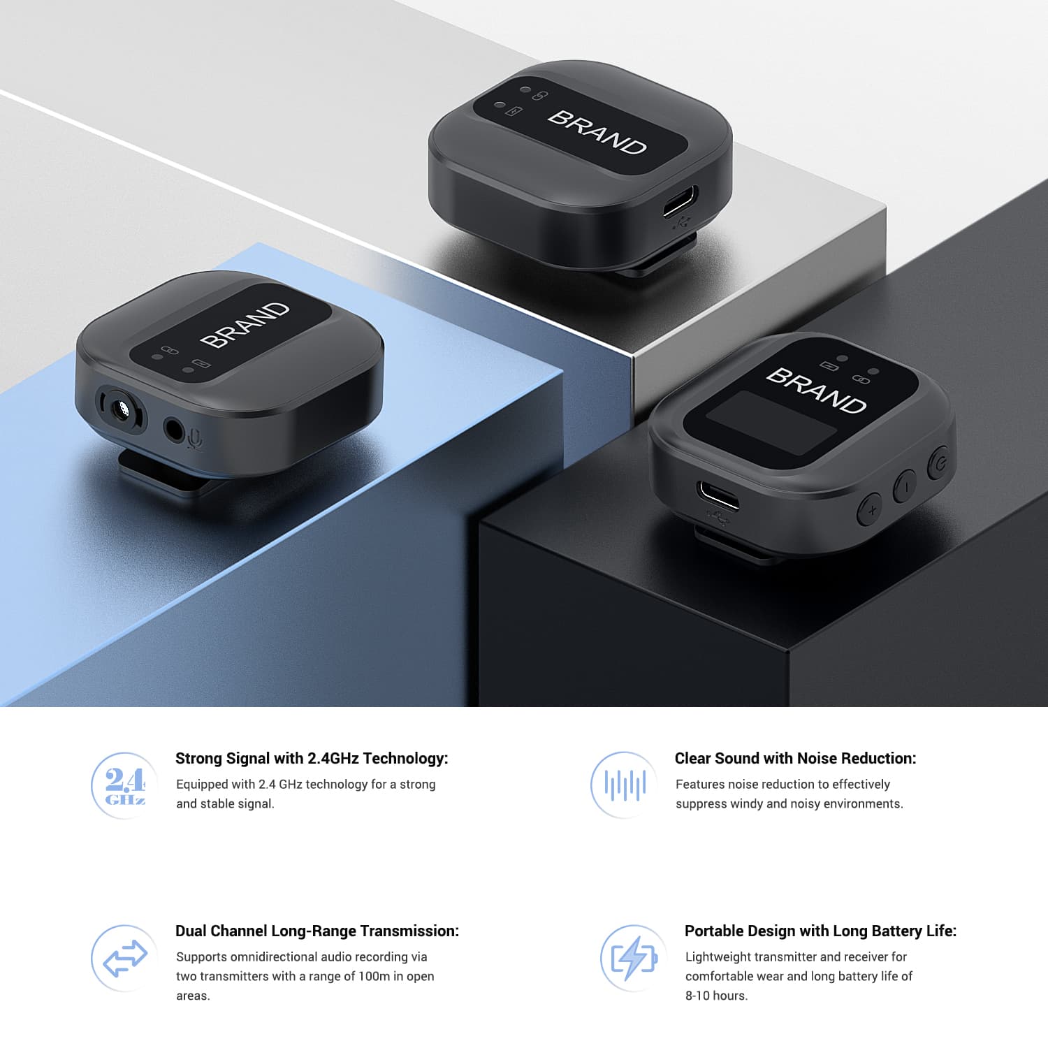 2.4GHz TECHNOLOGY: It has a strong signal, more stable than Wi-fi & Bluetooth. It effectively suppresses windy & noisy environments to record crystal clear sound. It offers a wide frequency range of 20Hz to 20kHz. It can be used with mainstream smartphones, DSLR cameras, and laptops.