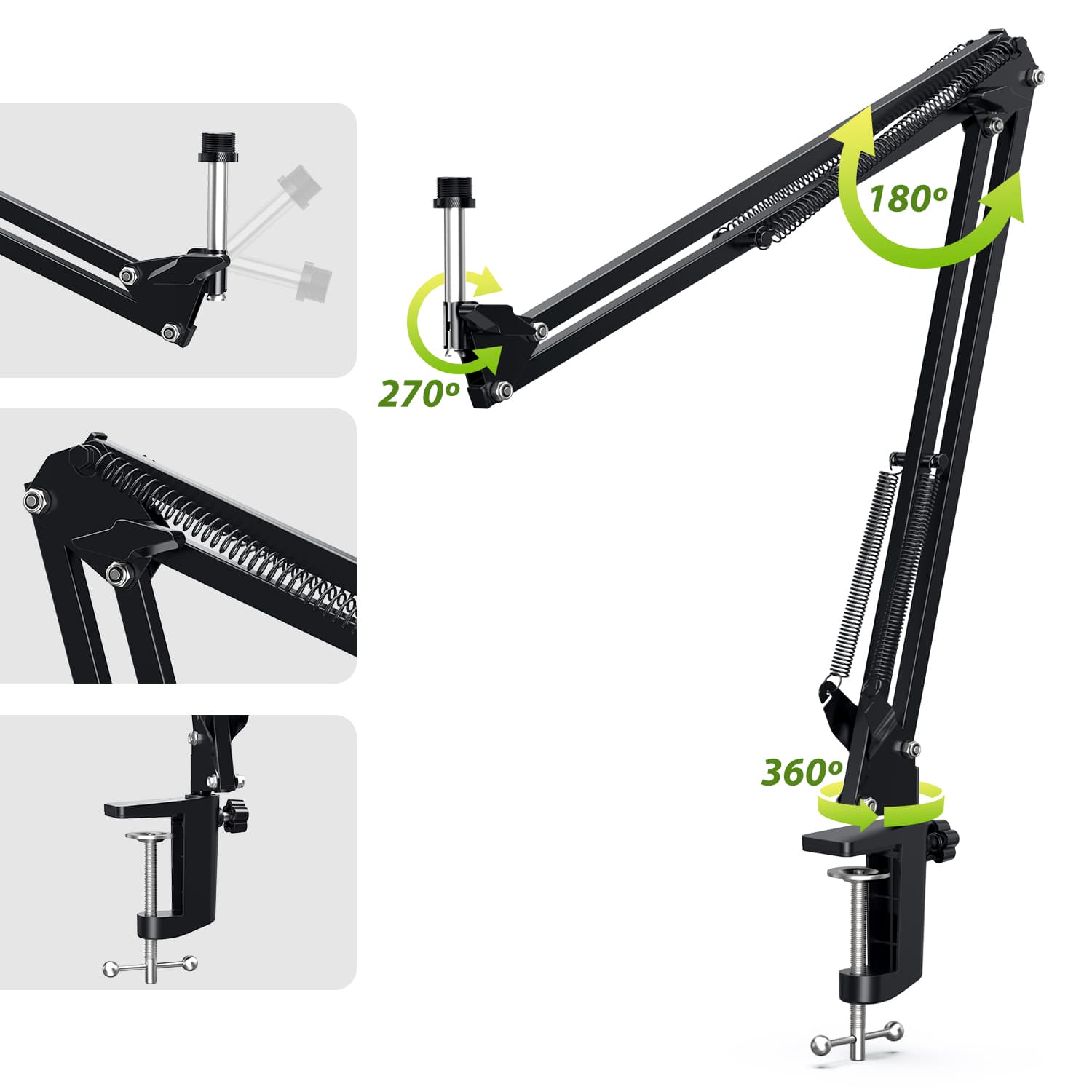 WIDE COMPATIBILITY: The microphone desk arm stand is compatible with Blue Yeti, Blue Snowball, Shure Mv7, Sm7b, Hyperx Quadcast, Fifine and other mics.