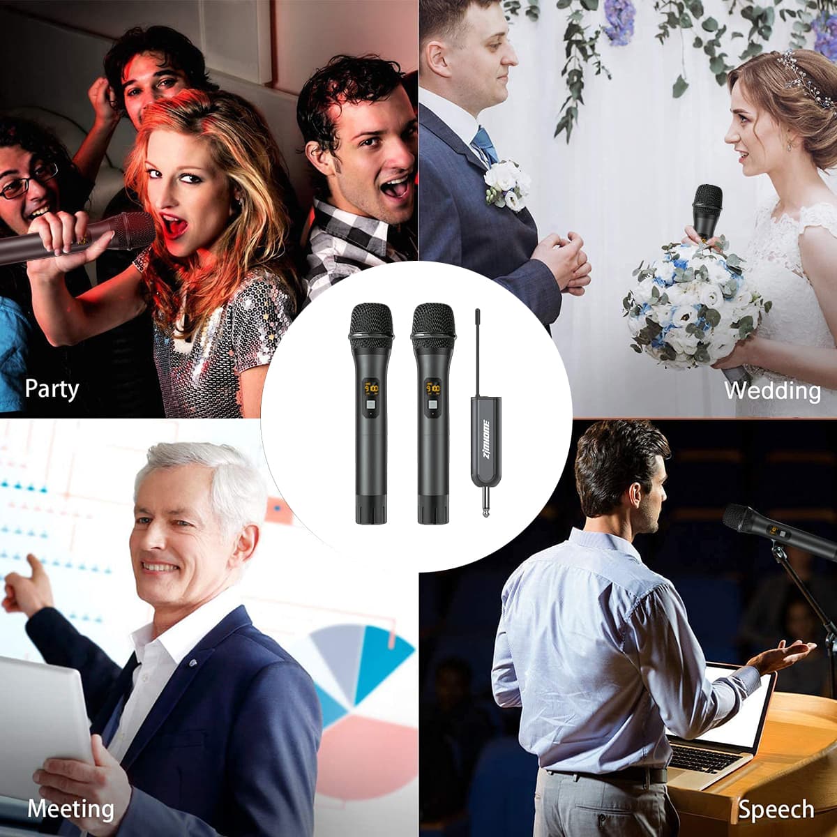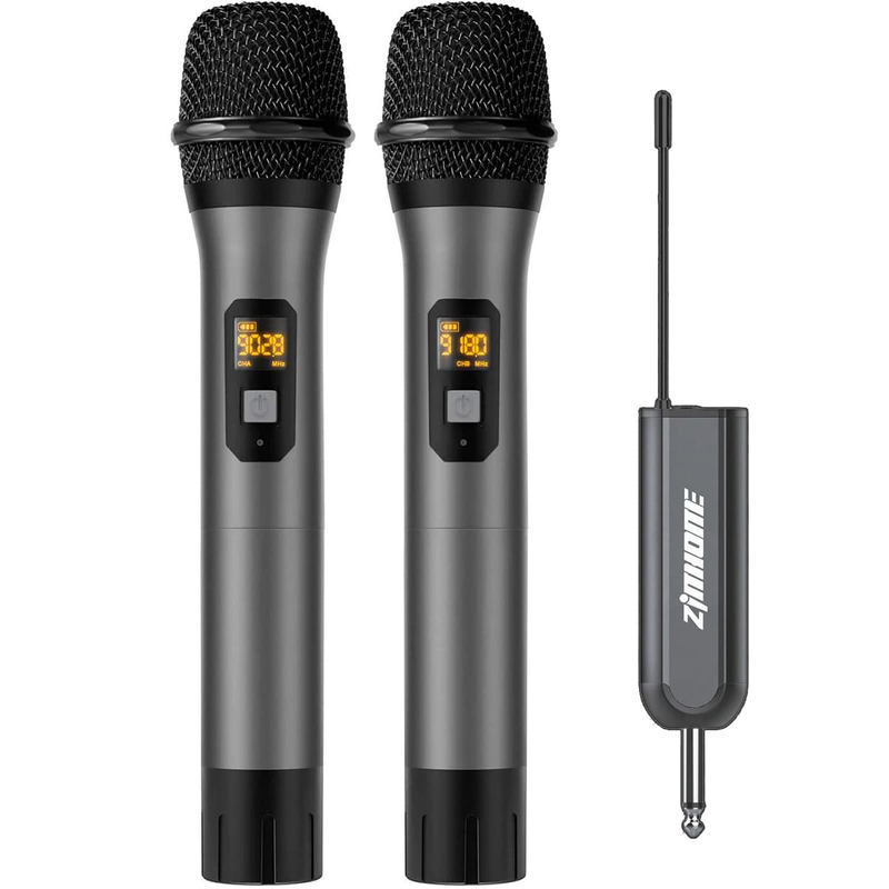 Plug & Play Operation – Dual-channel dynamic microphones with a 60m range and 15 frequency channels. Supports up to 15 sets simultaneously, ideal for karaoke, weddings, and small performances.
