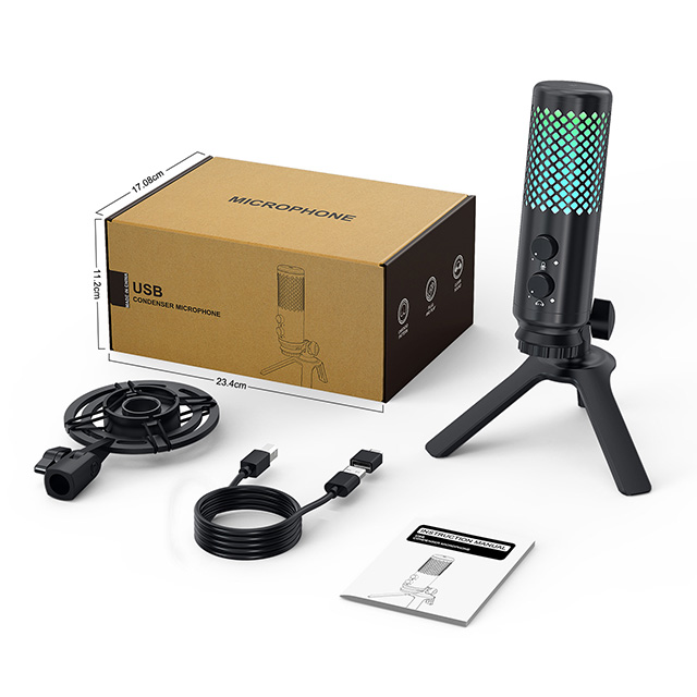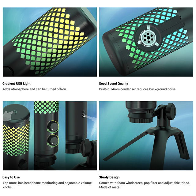 Tap to Mute: A button at the top is quick to get a mute atmosphere. When you are streaming or recording interrupted by someone, just tap the button to mute the mic. What’s more, it is convenient for you to turn off the RGB light by long holding the button.