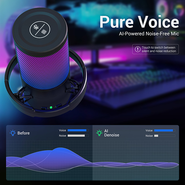 Advanced AI Noise Reduction: Featuring AI-powered noise reduction technology, simply activate it with a long press to automatically detect and eliminate background noise. This feature is invaluable for gamers and streamers, ensuring crystal-clear voice communication without distractions.