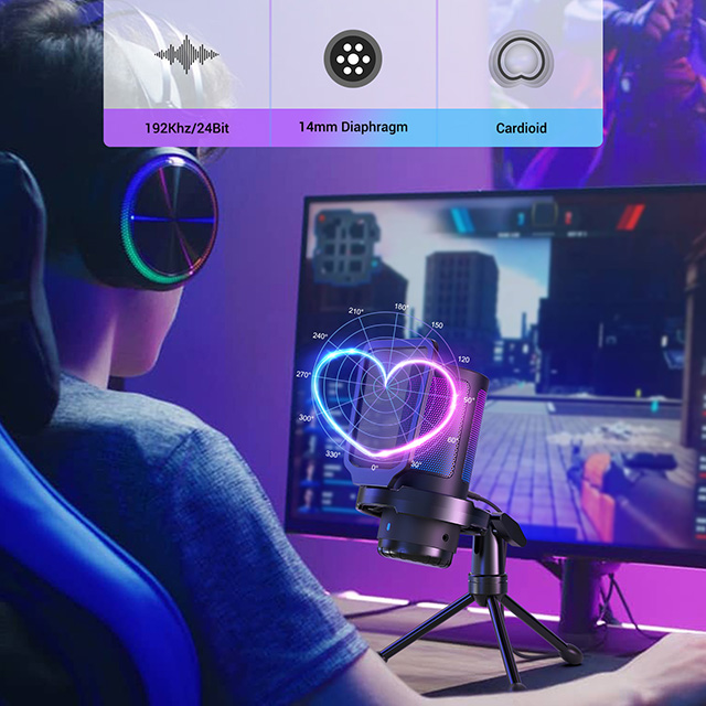 High-Quality Audio Performance: With a cardioid polar pattern and a 14mm diaphragm, the microphone captures sound from the front while rejecting noise from the sides and rear. This directional sensitivity focuses on your voice, delivering clear and detailed audio suitable for gaming commentary, streaming, and podcasting.