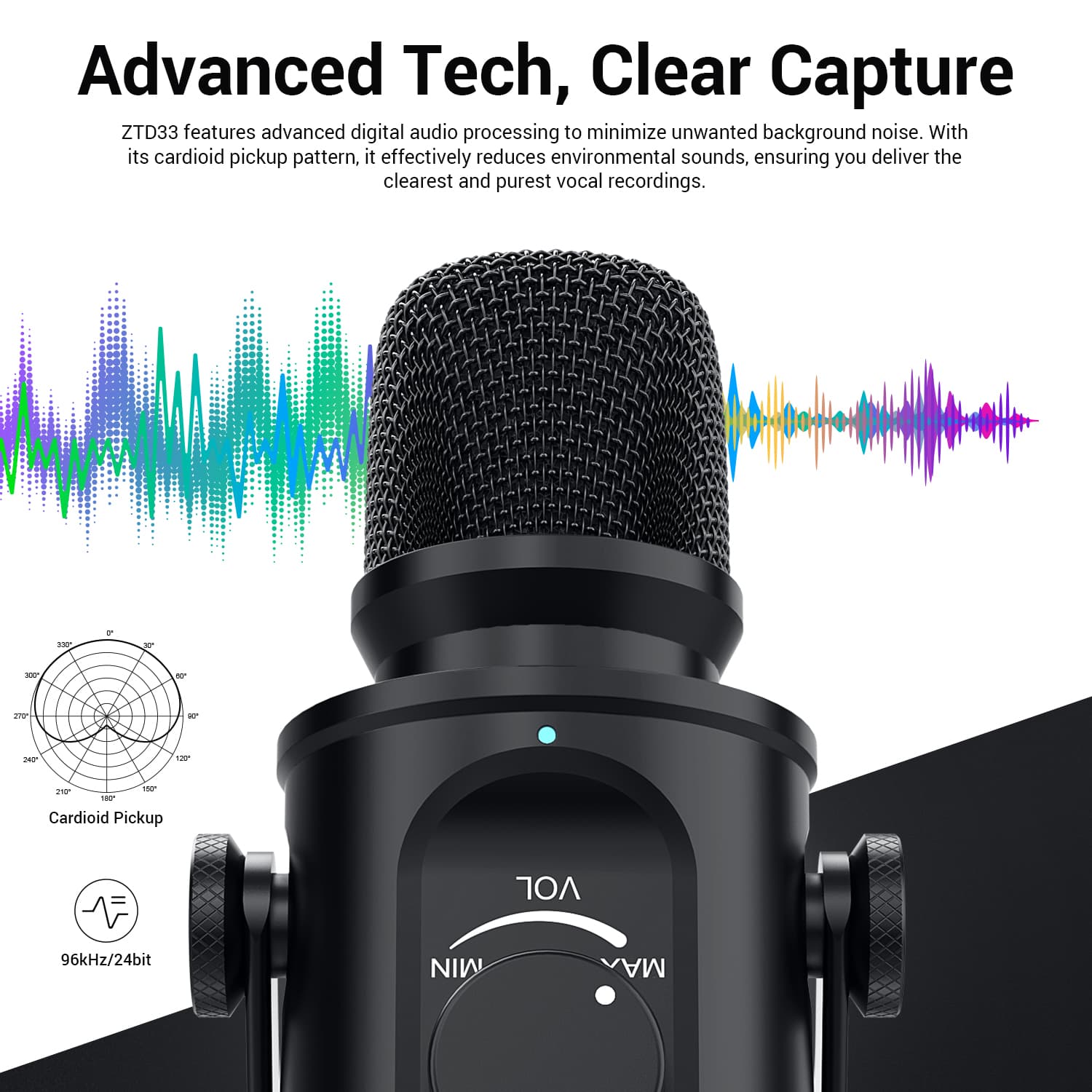 Zero Latency Monitoring – Features a built-in headphone jack for real-time monitoring, ensuring precise vocal control and mix adjustments.
